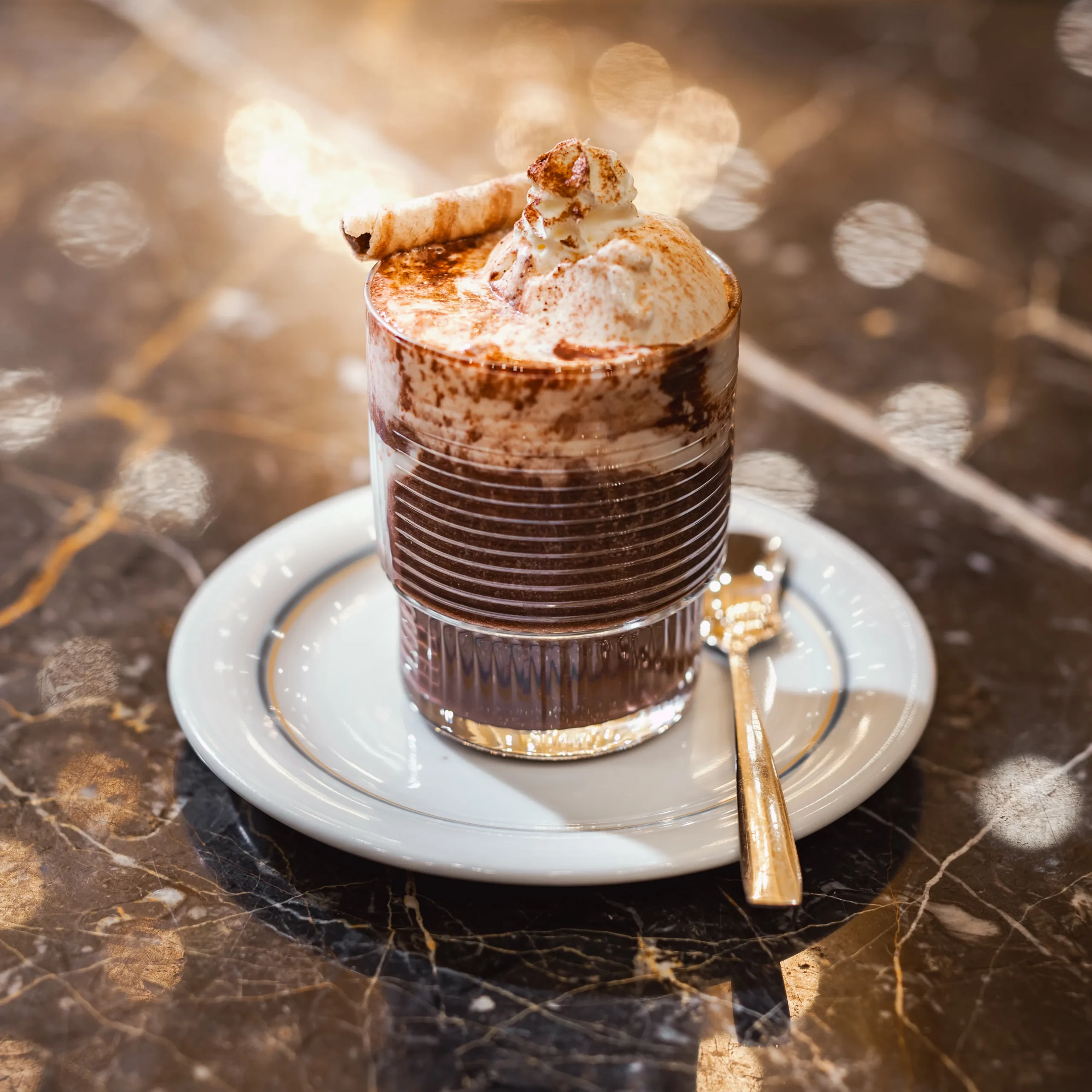 هات چاکلت ، شیر ، یک اسکوپ بستنی وانیلی